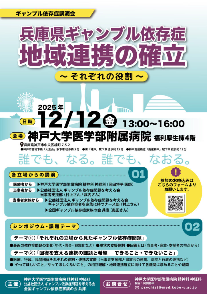 NPO法人全国ギャンブル依存症家族の会 > Blog > イベント情報 > 【兵庫】兵庫県ギャンブル依存症