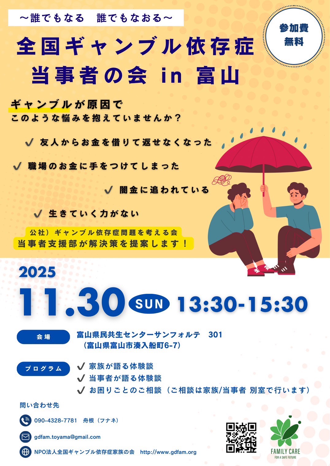 NPO法人全国ギャンブル依存症家族の会 > イベント > 家族の会【富山】