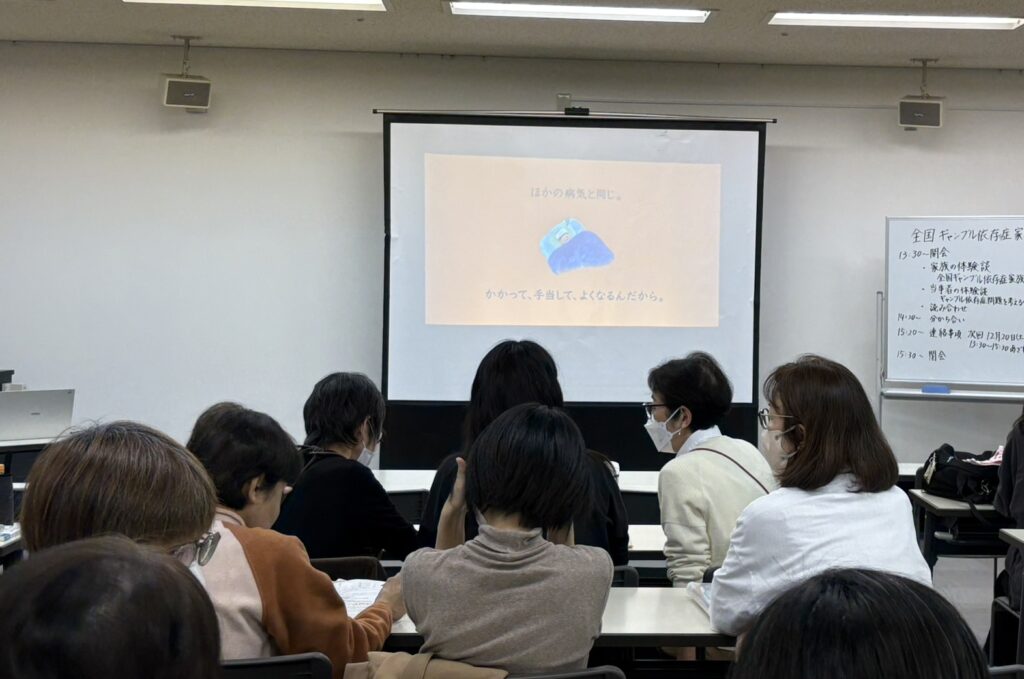 初めに、全国ギャンブル依存症家族の会東京のメンバーの体験談を聞きました。息子の問題で苦しむ中、家族会と出会い、さまざまな支援によって回復の入口へ向かうことができ、“私は一人ではない、相談できる仲間がいる事で心が楽になった”と話していたのが印象に残りました。