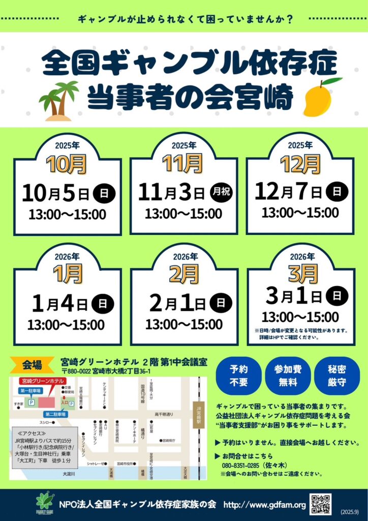 2025年12月7日(日)宮崎グリーンホテルにて全国ギャンブル依存症家族の会宮崎と当事者会が開催されました。