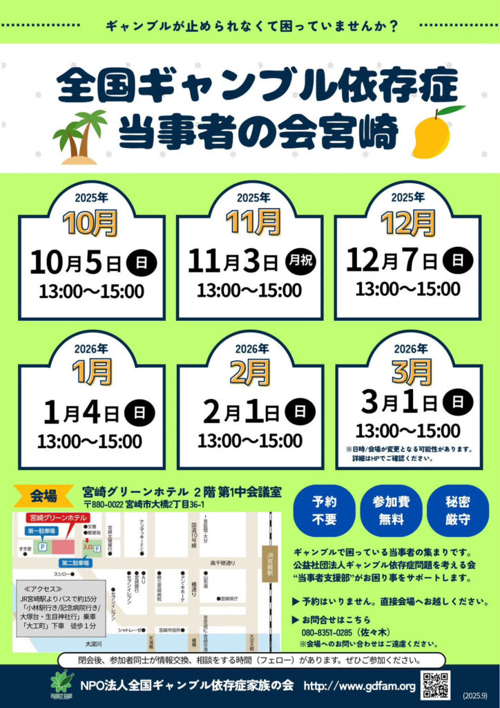 令和8年1月4日(日)、全国ギャンブル依存症家族の会宮崎・当事者会が開催されました。